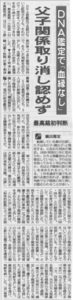同種の3件の裁判が最高裁(第一小法廷)にかかっており、2件(大阪、札幌)は高裁がDNAで父子関係がないことが明らかな場合は父子関係を取り消せるとしており、1件(高松)は高裁が取り消せないとして、判断が分かれていました。この3件について、最高裁は、父子関係を否定するDNA鑑定があっても、法律通り取り消せないとの裁判を言い渡しました。